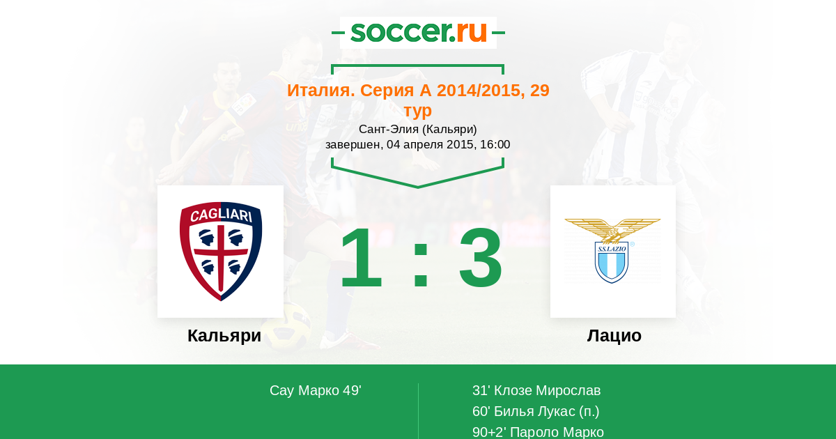 31' (0:1) Клозе Мирослав (11) (Маури Стефано (6))