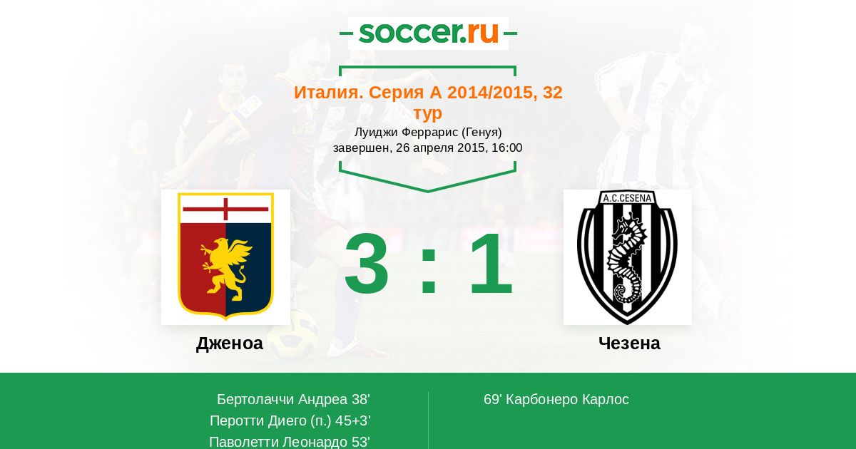 69' (3:1) Карбонеро Карлос (7) (Рензетти Франческо (33))