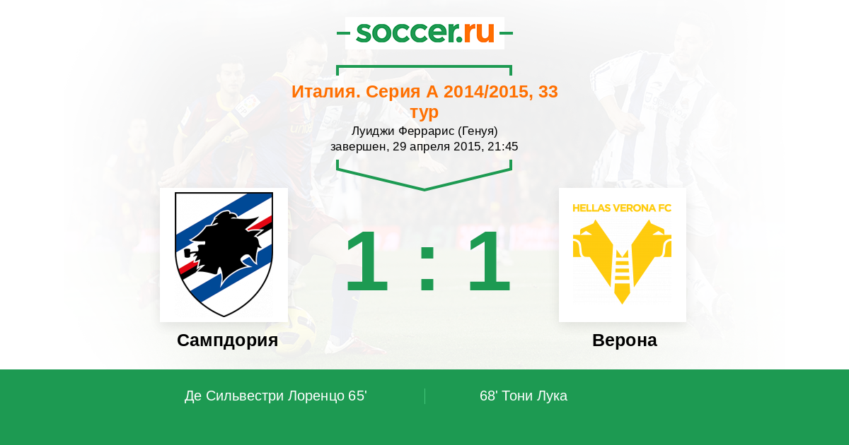 65' (1:0) Де Сильвестри Лоренцо (29) (Муриэль Луис (24))