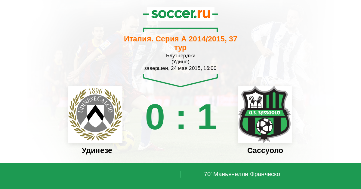 70' (0:1) Маньянелли Франческо (4) (Берарди Доменико (25))