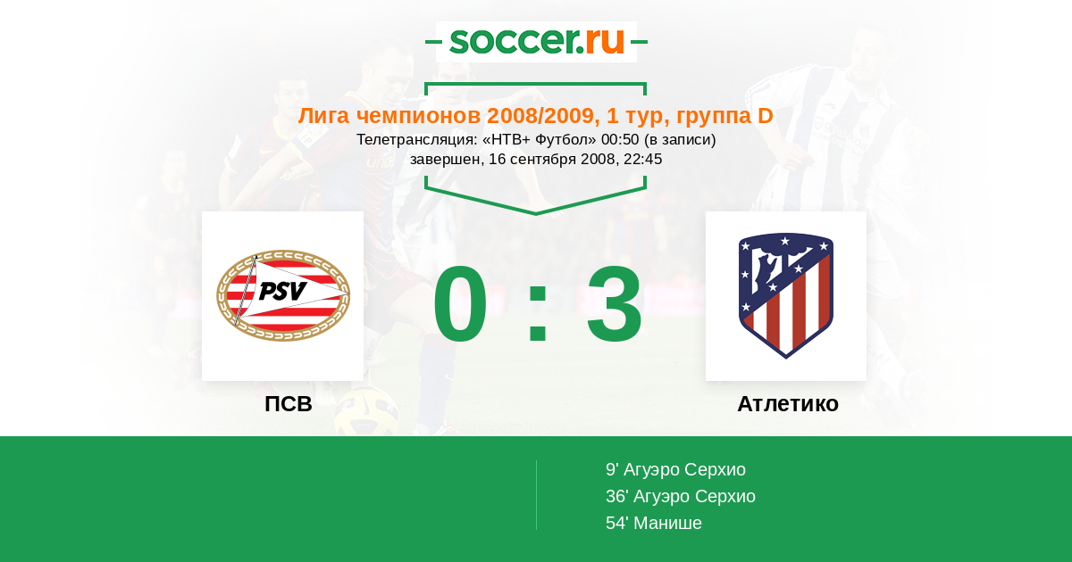 9' (0:1) Агуэро Серхио (Гарсия Луис)