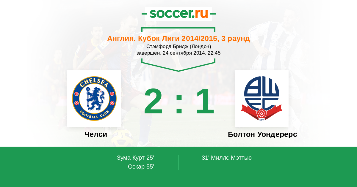 Запасные: 11 Дрогба Дидье (с 72'), 10 Азар Эден (с 80'), 21 Матич Неманья (с 90+1'), 34 Бэйкер Льюис, 23 Шварцер Марк, 31 Кристенсен Андреас, 2 Иванович Бранислав