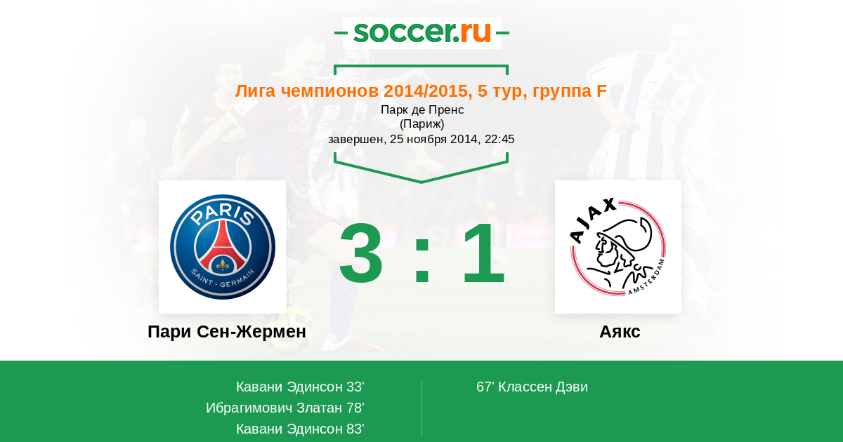78' (2:1) Ибрагимович Златан (10) (Пасторе Хавьер (27))