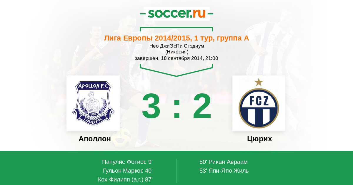 9' (1:0) Папулис Фотиос (26) (Режек Ян (11))