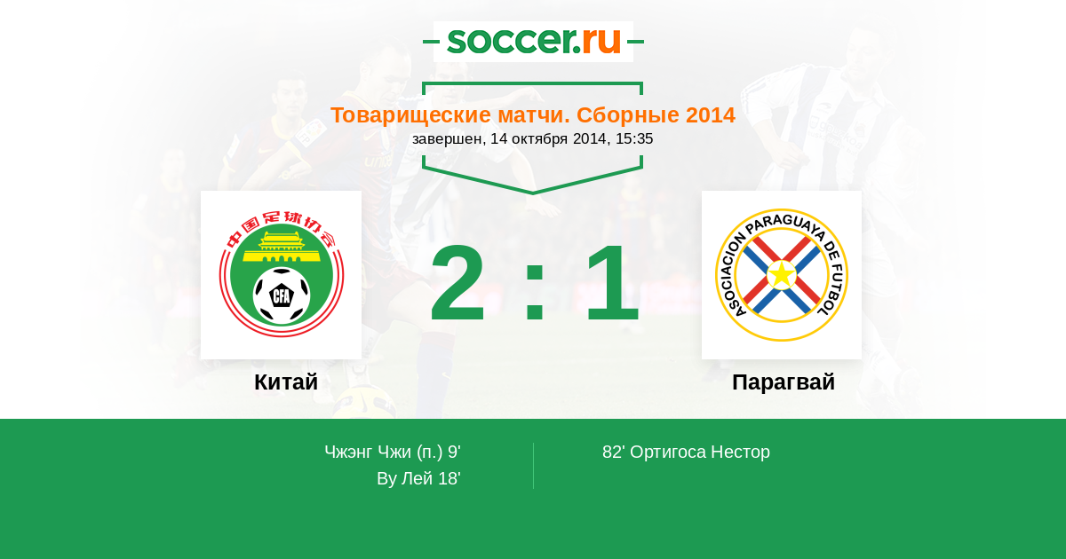 Запасные: 26 Мэй Фанг (с 46'), 18 Гао Лин (с 55'), 4 Жипенг Цзян (с 77'), 23 Ляо Лишенг (с 77'), 20 Ю Ханчао (с 78'), 16 Жанг Джиаки (с 80'), 11 Хань Пэн, 24 Лей Тенглонг, 8 Ли Сюэпен, 12 Ян Юнлинг, 21 Юй Хай, 1 Цзэн Чэн
