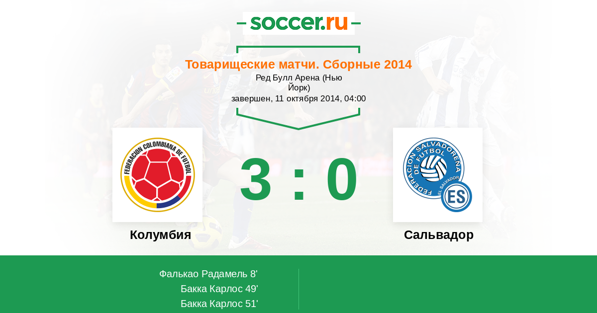 51' (3:0) Бакка Карлос (17) (Фалькао Радамель (9))