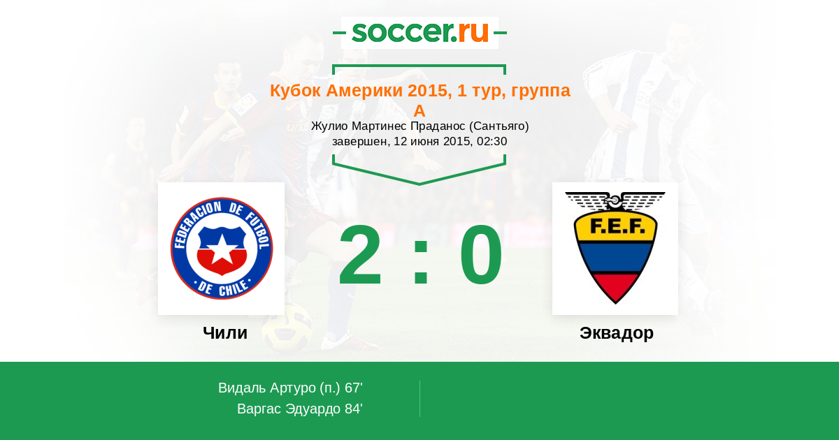 84' (2:0) Варгас Эдуардо (11) (Санчес Алексис (7))