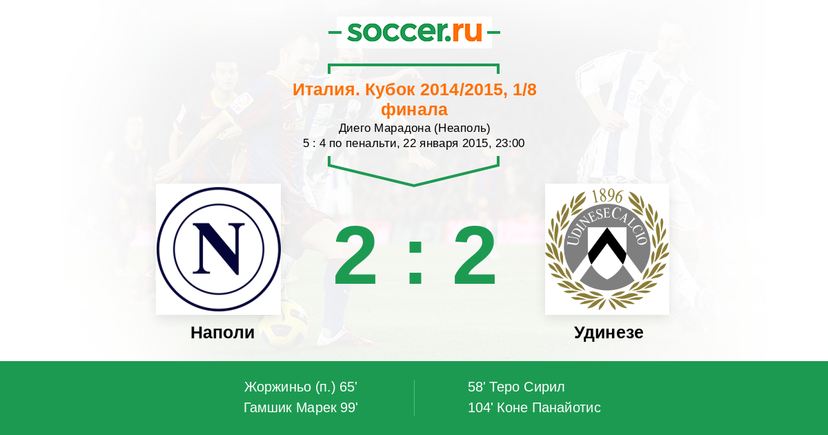 Запасные: 6 Де Гузман Джонатан (с 72'), 7 Кальехон Хосе (с 84'), 9 Игуаин Гонсало (с 111'), 11 Маджо Кристиан, 19 Лопес Давид, 26 Кулибали Калиду, 15 Коломбо Роберто, 1 Кабрал Рафаэль