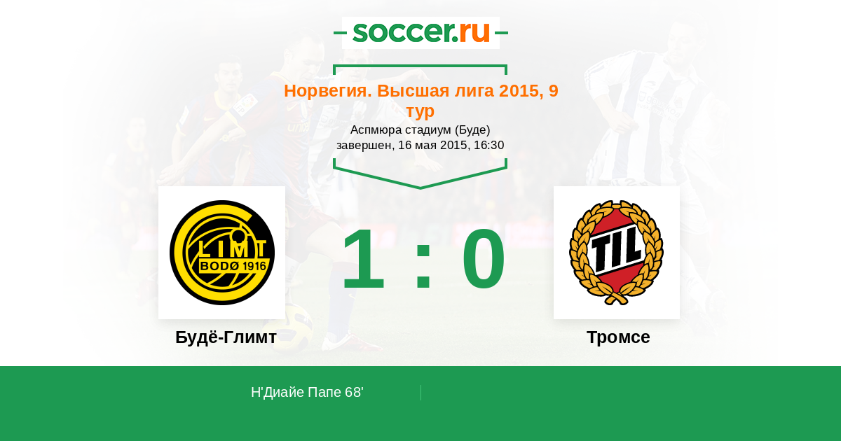 68' (1:0) Н'Диайе Папе (7) (Ольсен Тронд (30))