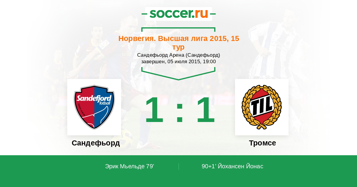 Запасные: 17 Йохансен Реми (с 68'), 11 Йохансен Йонас (с 83'), 24 Ингебригтсен Микаэль (с 83'), 30 Эспейорд Рунар, 27 Михалсен Фредрик, 4 Гьесдаль Хенрик, 1 Бенни Лекстрём