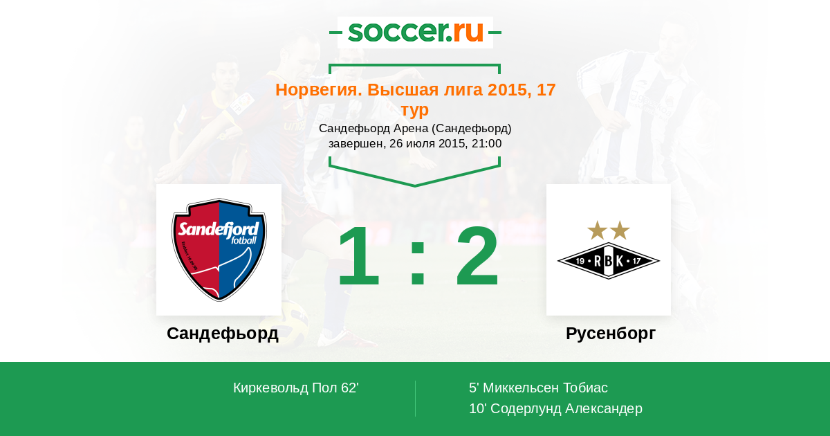 5' (0:1) Миккельсен Тобиас (11) (Хелланд Пал-Андре (23))