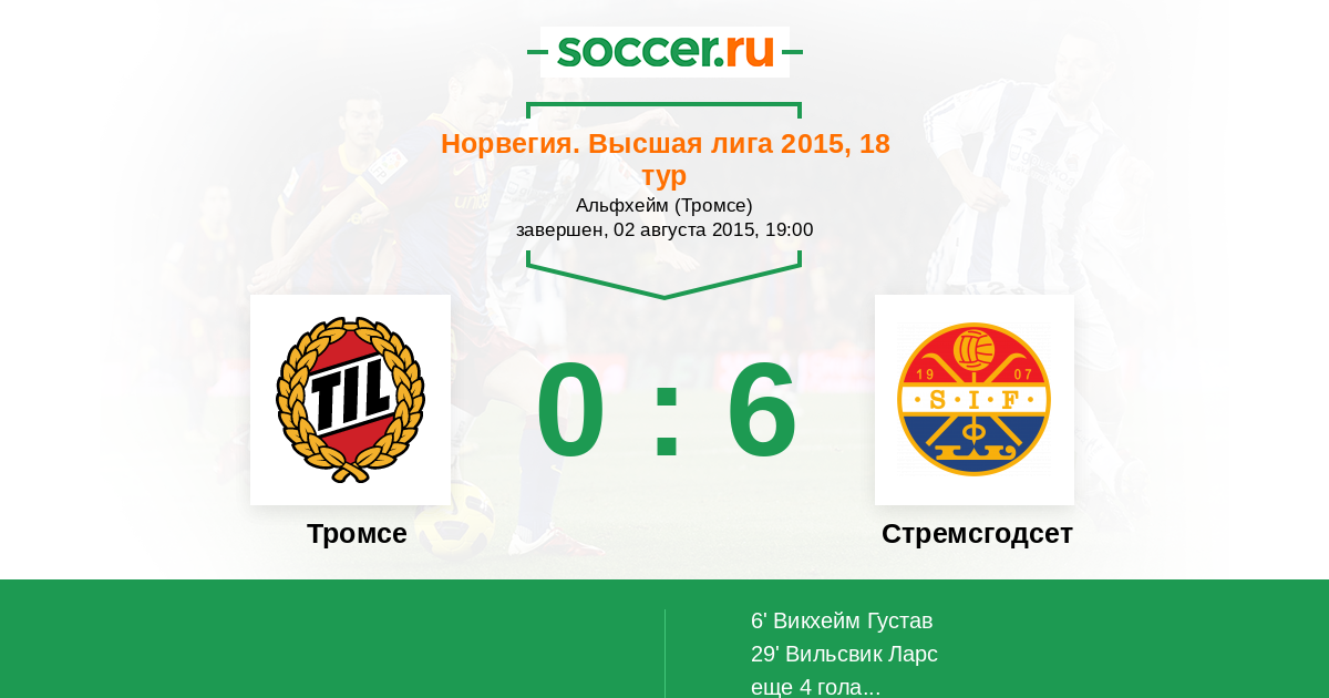 29' (0:2) Вильсвик Ларс (26) (Сторфлор Эёвинд (9))