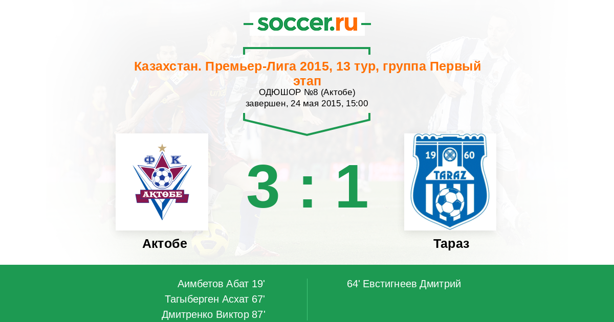 67' (2:1) Тагыберген Асхат