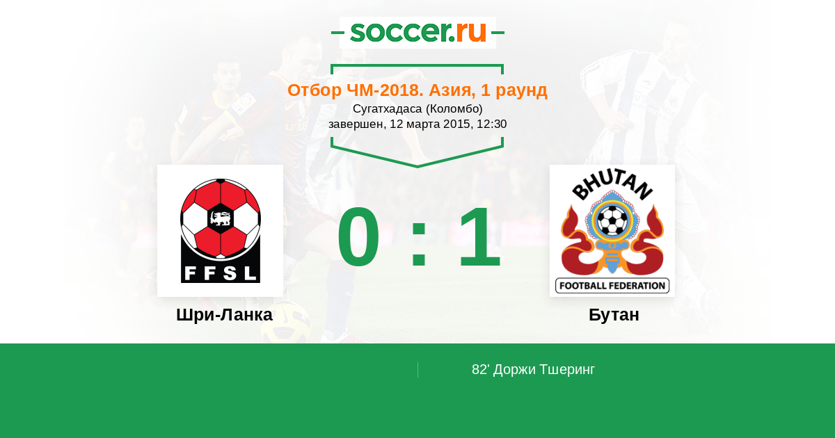 Запасные: Дава Лунгток (с 64'), Гурунг Карун (с 71'), Жамфел Нгаванг, Бисва Дхан, Тшетен Угьен, Субба Диваш, Дендуп Тшеринг, Дорджи Чими, Пунтшо Сонам, Гельцхен Кинга, Доржи Тинли, Вангди Нима
