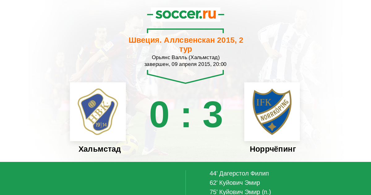 44' (0:1) Дагерстол Филип (25)