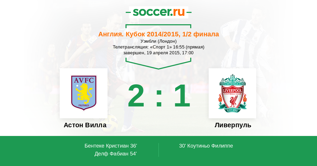 54' (2:1) Делф Фабиан (16) (Грилиш Джек (40))