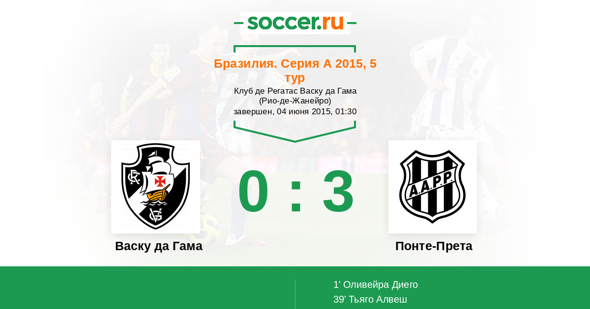 1' (0:1) Оливейра Диего (9)
