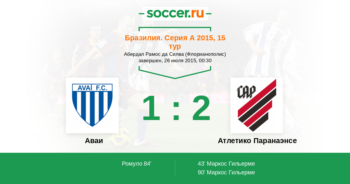 90' (1:2) Маркос Гильерме (10)