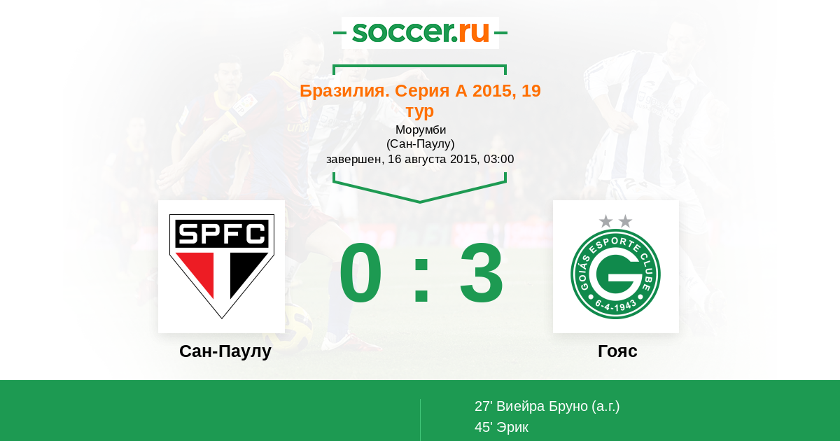 45' (0:2) Эрик (11) (Менезес Фелипе (10))