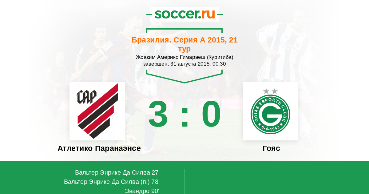 27' (1:0) Вальтер Энрике Да Силва (18) (Никао (11))