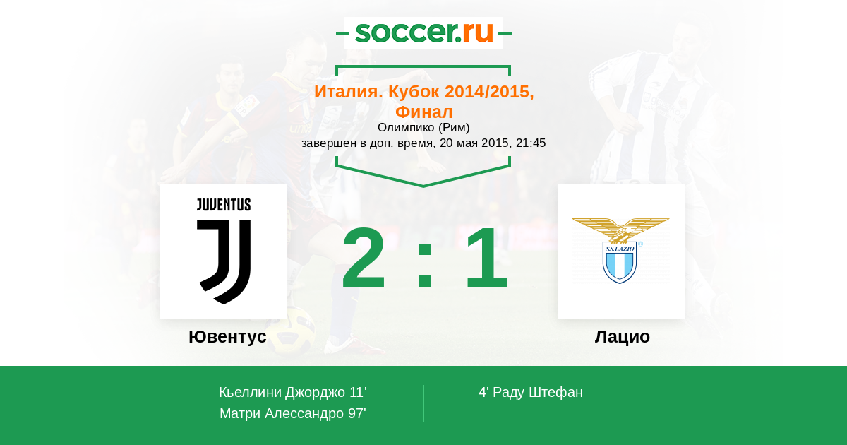 11' (1:1) Кьеллини Джорджо (3) (Эвра Патрис (33))