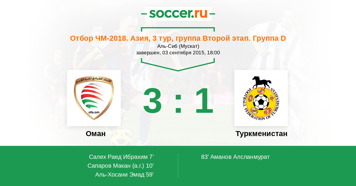 Запасные: Аль-Фарси Сауд (с 68'), Аль-Сеяби Мохаммед (с 76'), Аль-Джабри Али (с 86'), Аль-Нахар Али Салим, Аль-Балуши Азан, Аль-Рашиди Фаиз, Аль Овайзи Хабер Мохаммед Сайхаяр, Аль-Халди Мохсин, Аль-Маашари Мохамед, Аль-Алави Рияд, Аль Разаики Саид Салим, Аль-Балуши Мохаммед