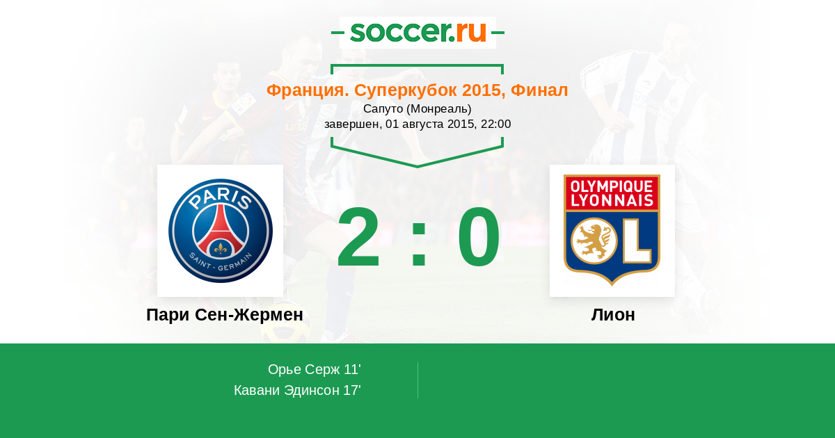 Запасные: 29 Огюстен Жан-Кевин (с 63'), 4 Стамбули Бенджамин (с 70'), 15 Баэбек Жан-Кристоф (с 82'), 5 Маркиньос, 8 Мотта Тиаго, 21 Динь Люка, 30 Сиригу Сальваторе