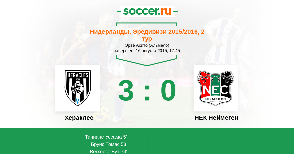 74' (3:0) Вегхорст Вут (19) (Таннане Уссама (11))