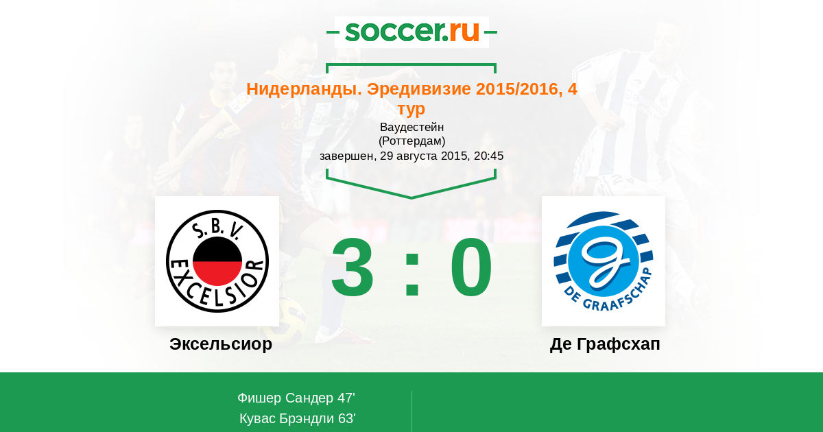 47' (1:0) Фишер Сандер (6) (Станс Джефф (10))