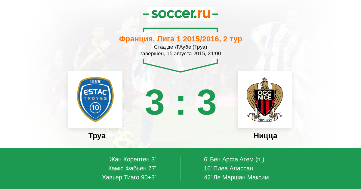 3' (1:0) Жан Корентен (27) (Коне Мори (22))