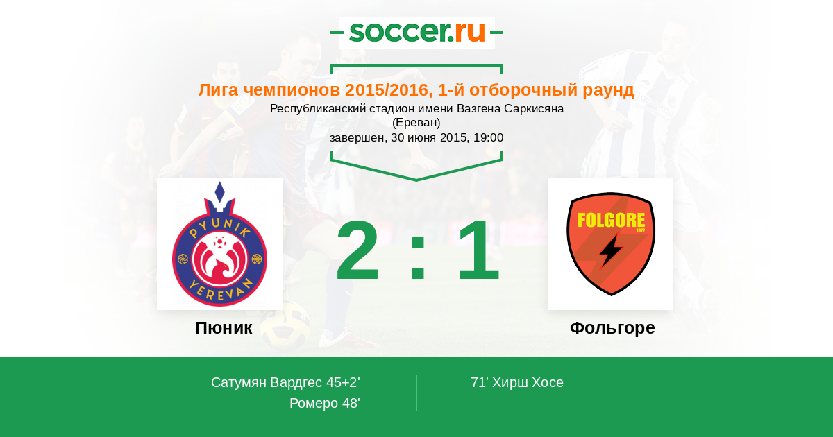45+2' (1:0) Сатумян Вардгес (30)