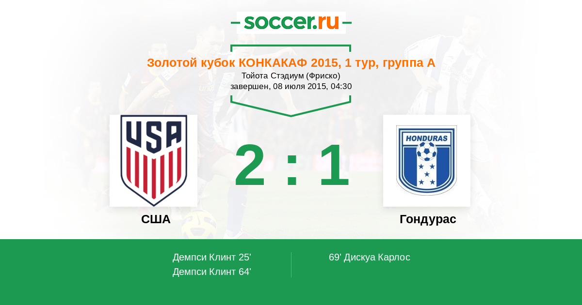 64' (2:0) Демпси Клинт (8) (Брэдли Майкл (4))