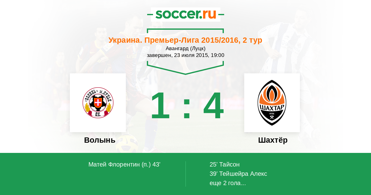 54' (1:3) Тейшейра Алекс (29) (Тайсон (28))