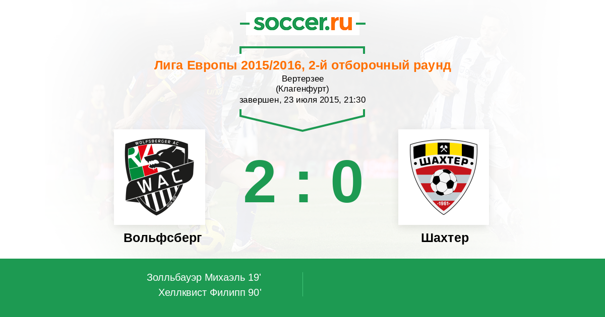 19' (1:0) Золльбауэр Михаэль (26)
