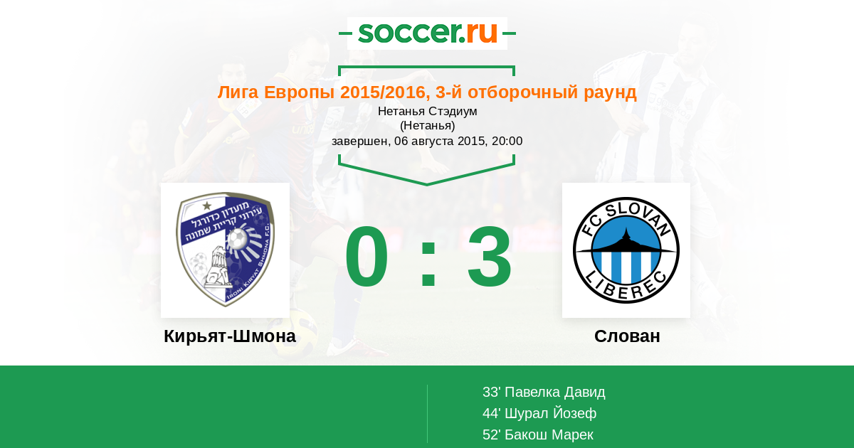 33' (0:1) Павелка Давид (8)