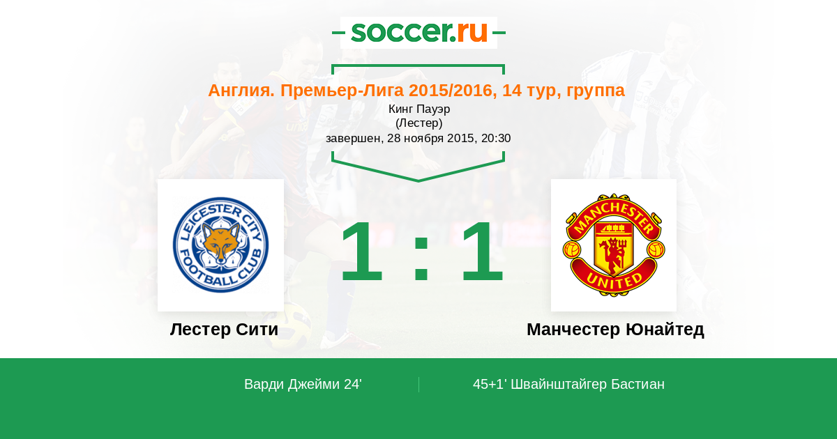 24' (1:0) Варди Джейми (9) (Фукс Кристиан (28))
