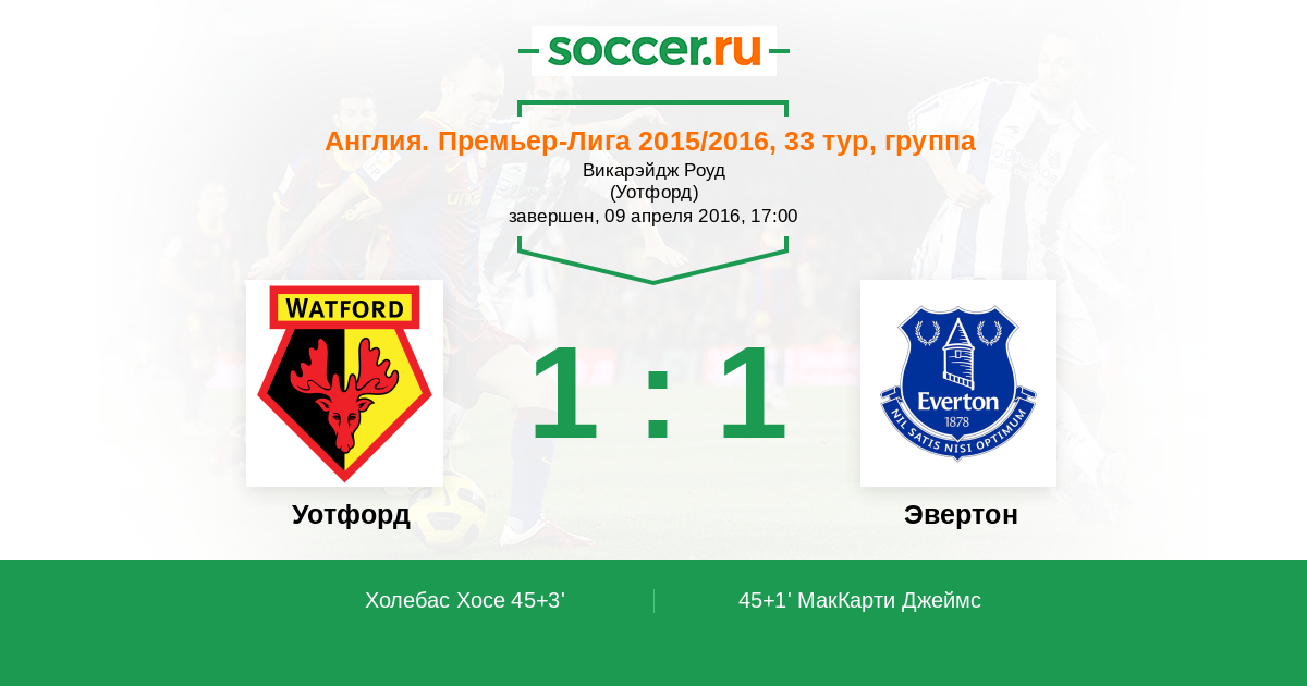 45+3' (1:1) Холебас Хосе (25) (Уотсон Бен (23))