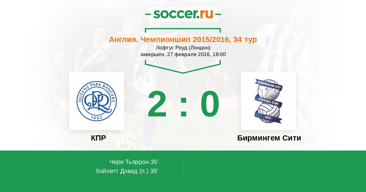 35' (1:0) Чери Тьяррон (8) (Перч Джеймс (24))
