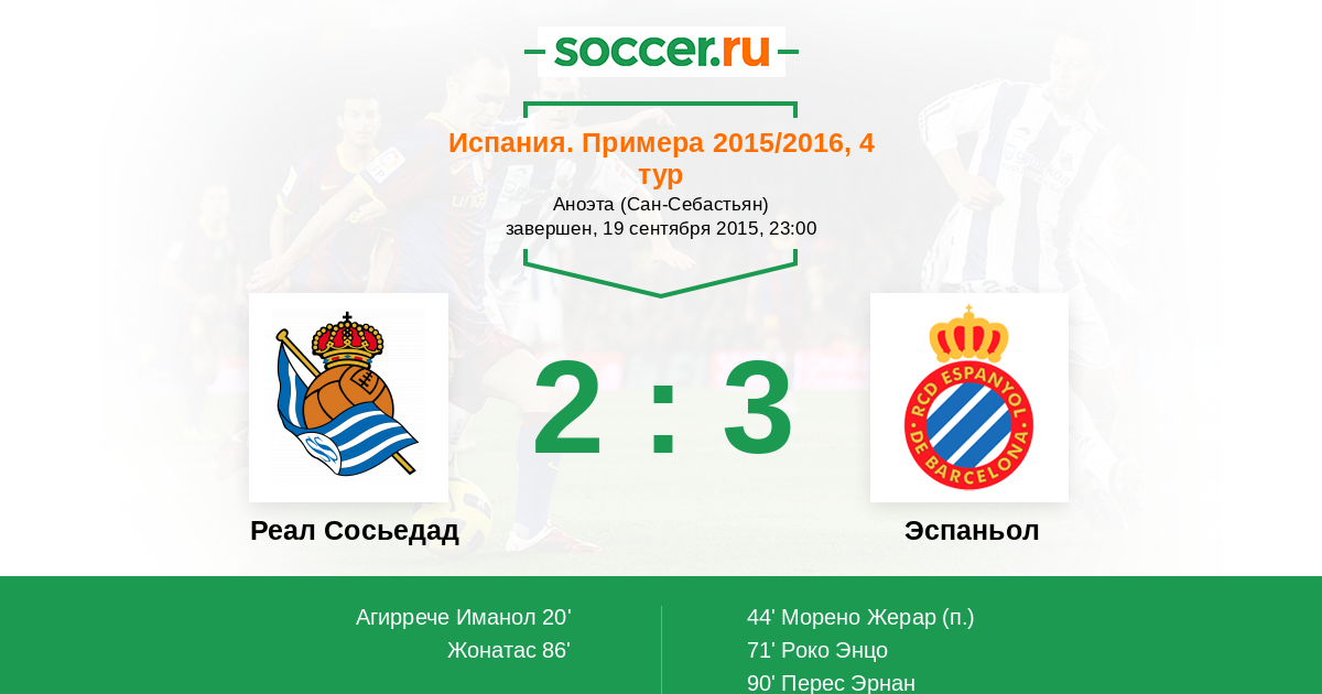 20' (1:0) Агиррече Иманол (9) (де ла Белья Альберто (24))
