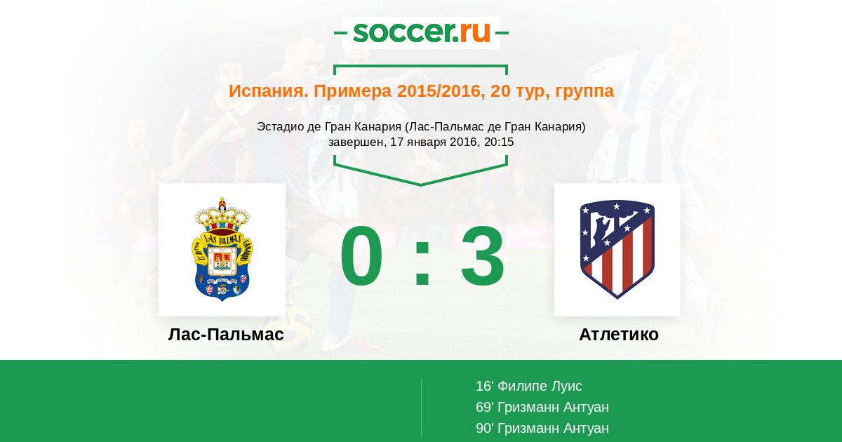 16' (0:1) Филипе Луис (3) (Хуанфран (20))