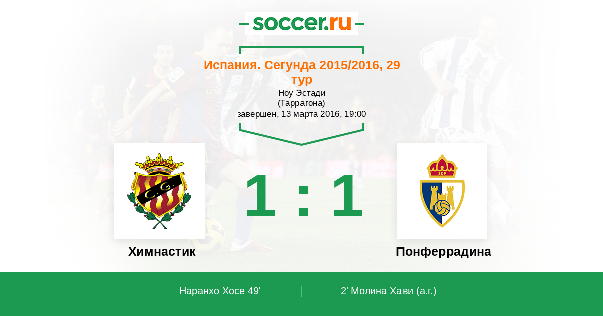 2' (0:1) Автогол Молина Хави (4)