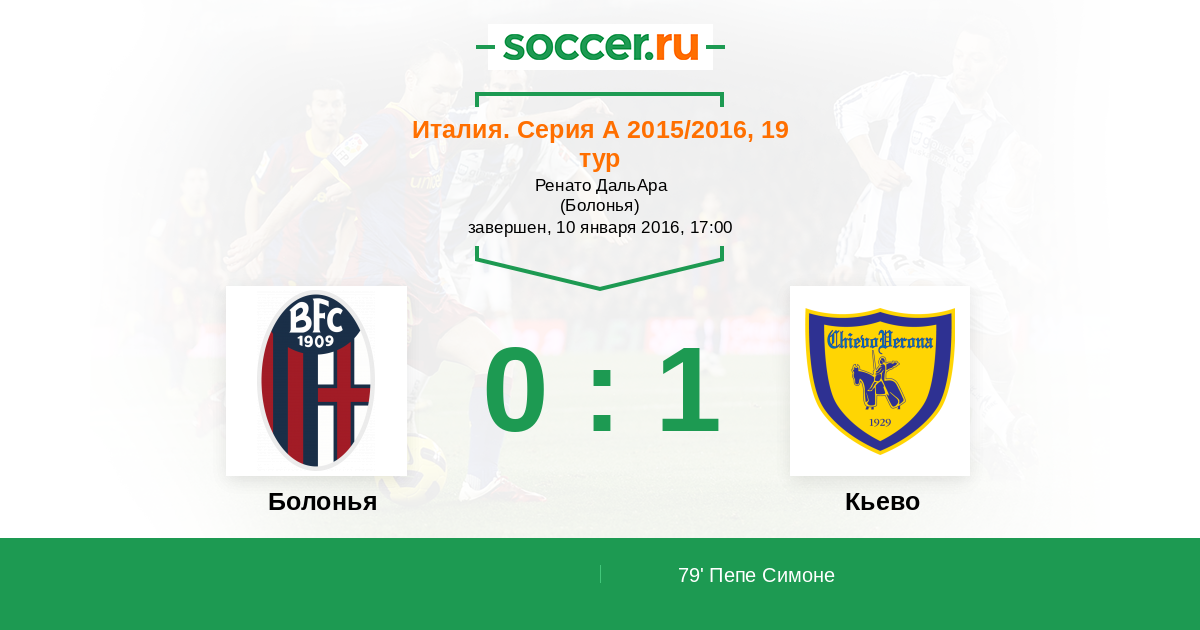 79' (0:1) Пепе Симоне (7) (Каччаторе Фабрицио (29))