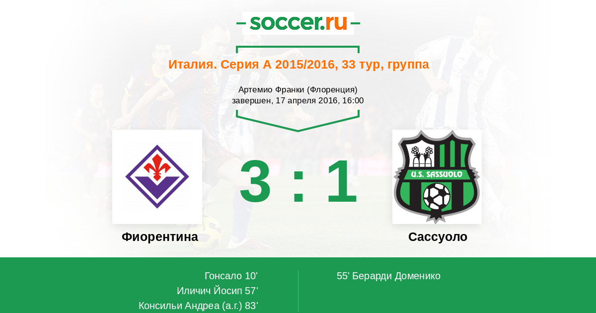 83' (3:1) Автогол Консильи Андреа (47)