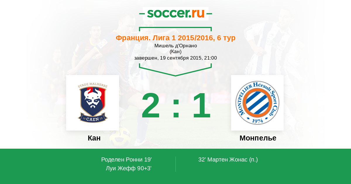 19' (1:0) Роделен Ронни (23) (Базиль Эрв (20))
