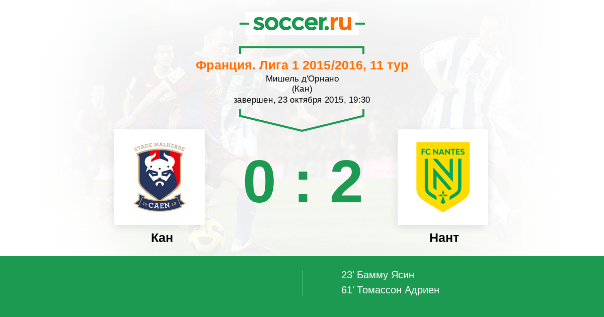 61' (0:2) Томассон Адриен (8) (Моимбе Вилфрид (13))