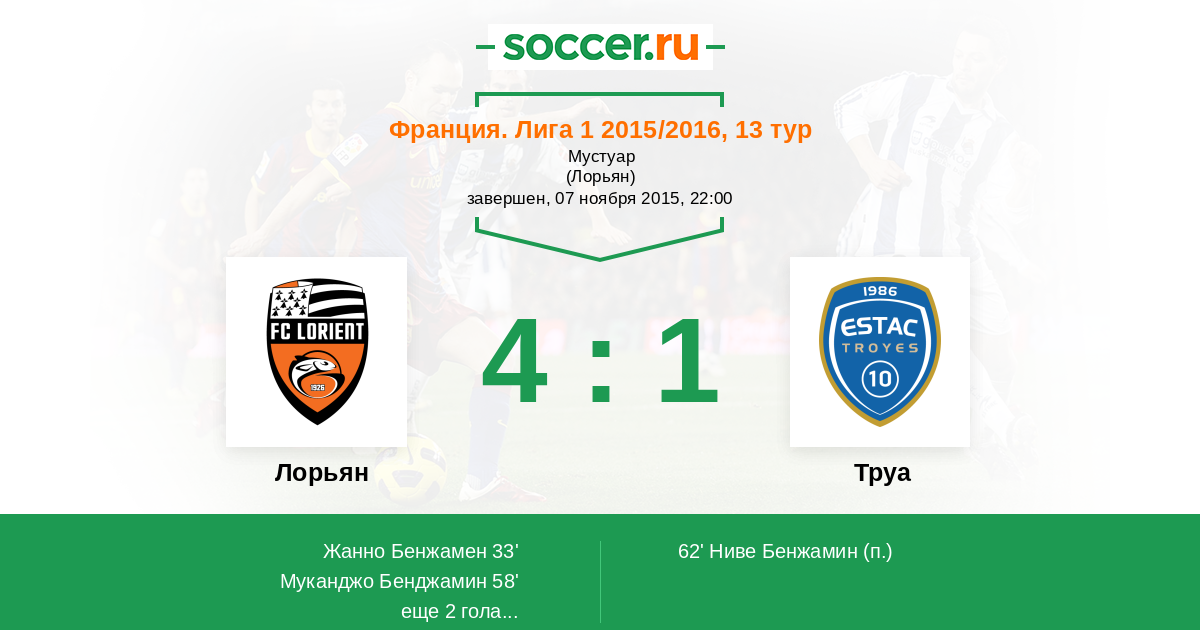 33' (1:0) Жанно Бенжамен (22)