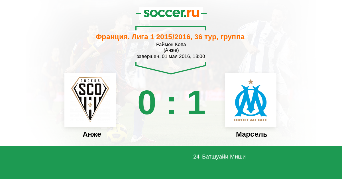 24' (0:1) Батшуайи Миши (22) (Флетчер Стивен (9))