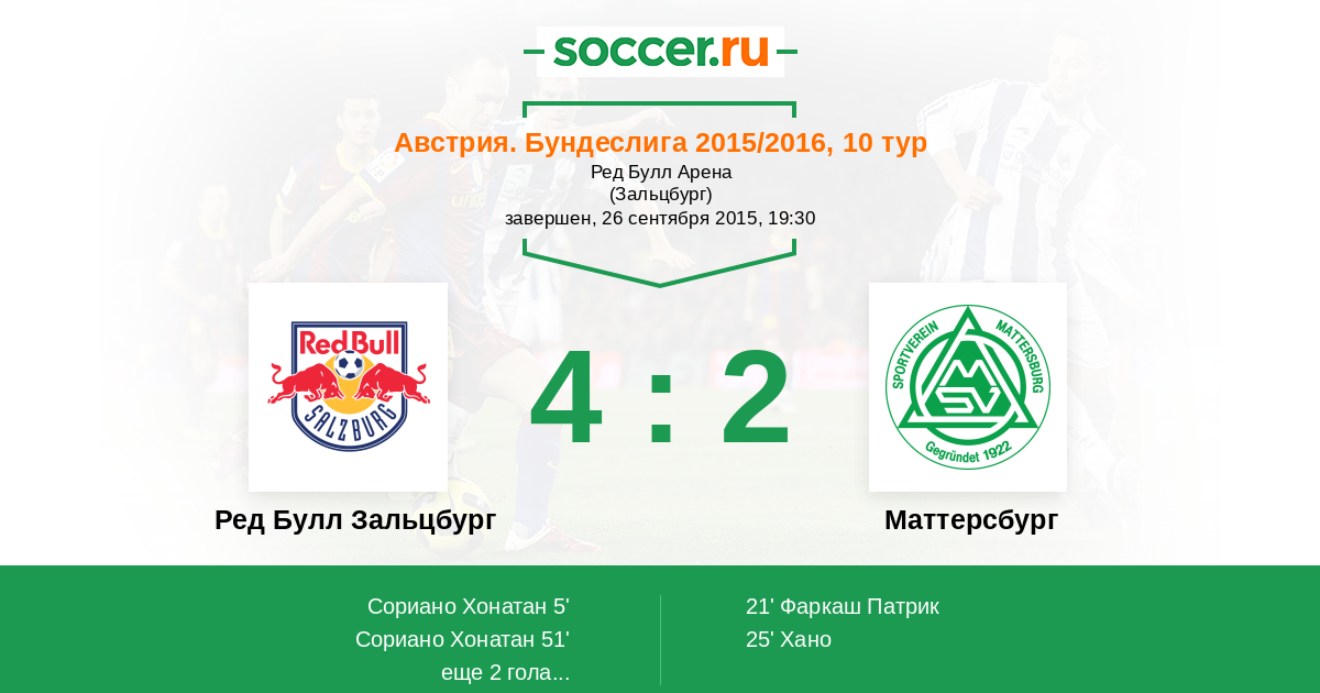 67' (3:2) Сориано Хонатан (26) (Ульмер Андреас (17))