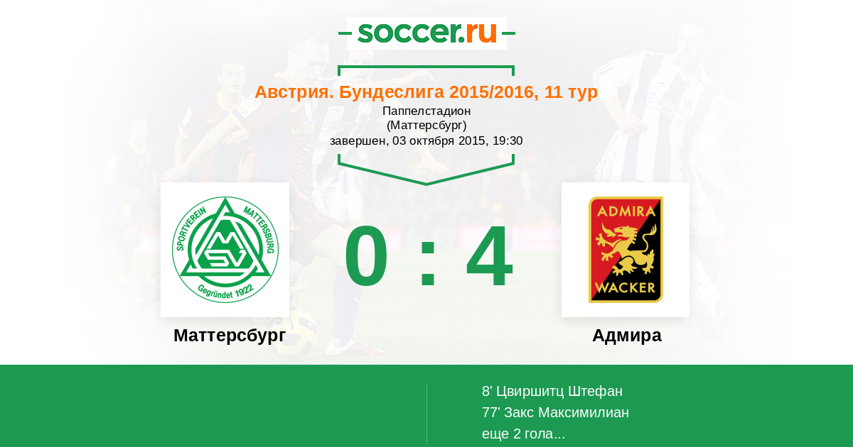 8' (0:1) Цвиршитц Штефан (4) (Штаркль Доминик (17))