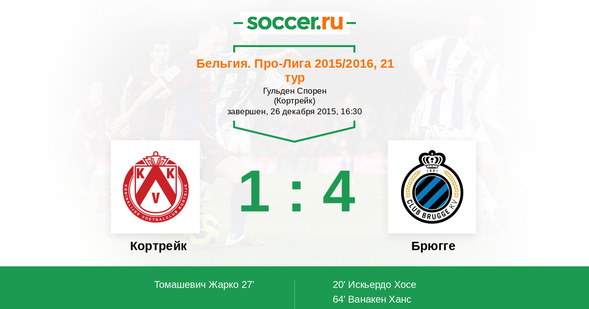 27' (1:1) Томашевич Жарко (33) (Ван Ину Лукас (12))